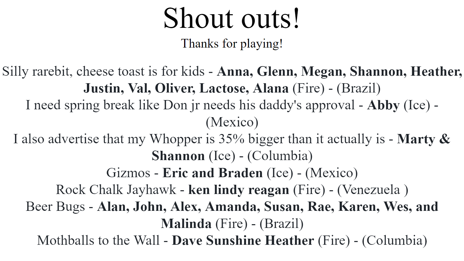 Shout-outs - click for full-size